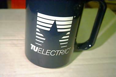 Texas Utilities Coffee Mug. Just the thing to microwave your coffee in, to remind you to use more electricity! Nice tall cup with cool logo. $1.50Picture