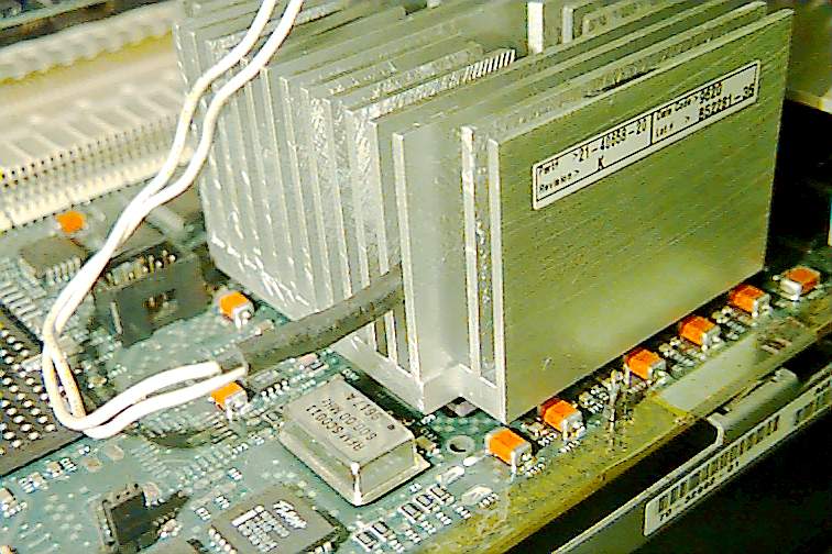 The CPU board is nicely made, and has a large heatsink on the 21164 Alpha processsor, and a duct for the heatsink cooling air. The bottom of the board also has a metal duct for cooling.